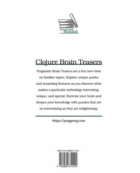 Challenge your knowledge of Clojure with 25 short Clojure teasers, sometimes with surprising results! Inspired by years of developer questions and feedback, these teasers are handpicked to clarify common points of confusion. Each code challenge illustrates Clojure's elegant design, explaining how and why it works. Enjoy these simple exercises solo or with friends to find gaps in your knowledge, challenge assumptions, and gain valuable insights. Tackle the most common points of confusion Clojure developers encounter, become more efficient when writing and debugging, and better predict the outcomes of Clojure code. Regardless of your Clojure experience, you're certain to learn something new. You know Clojure, but do you really understand it? You may know the mechanics and idioms, but what about the deeper, implicit concepts driving the design? Discover and explore the real Clojure, testing and supplementing your understanding of why this data-driven functional programming language works the way it does. You'll start with the basic concepts such as numeric types, numeric promotion, and logical truth. But the backbone of Clojure is its focus on immutable data, centered around the Clojure collections. Learn about collection equality, polymorphism on nil, adding and finding elements in different collection types, and sorted collections. Explore Clojure's evaluation model, including the Clojure reader, quoting, evaluation, and macro expansion. Finally, learn about the core library functions like `case`, `concat`, `for`, `partial`, and the details of type hinting, vars, and destructuring. Understand the peculiarities of these functions and how to apply them to your advantage in future programs. Use these new insights to build your own concise, expressive, and flexible code. Don't just use Clojure, master it. What You Need: * Java 8 or higher * Clojure 1.11 or higher