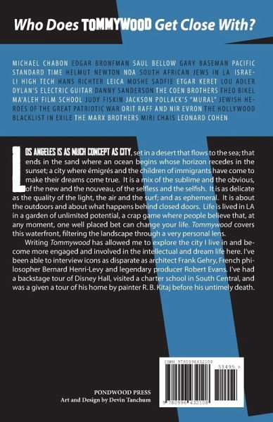 Los Angeles is as much concept as city, set in a desert that flows to the sea; that ends in the sand where an ocean begins whose horizon recedes in the sunset; a city where émigrés and the children of immigrants have come to make their dreams come true. It is a mix of the sublime and the obvious, of the new and the nouveau, of the selfless and the selfish. It is as delicate as the quality of the light, the air and the surf; and as ephemeral. It is about the outdoors and about what happens behind closed doors. Life is lived in LA in a garden of unlimited potential, a crap game where people believe that, at any moment, one well placed bet can change your life. Tommywood covers this waterfront, filtering the landscape through a very personal lens. Writing Tommywood has allowed me to explore the city I live in and become more engaged and involved in the intellectual and dream life here. I've been able to interview icons as disparate as architect Frank Gehry, French philosopher Bernard Henri-Levy and legendary producer Robert Evans. I've had a backstage tour of Disney Hall, visited a charter school in South Central, and was a given a tour of his home by painter R. B. Kitaj before his untimely death.