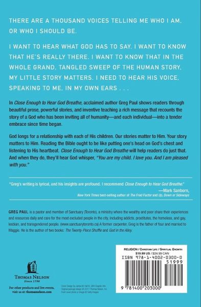 In Close Enough to Hear God Breathe, acclaimed author Greg Paul shows readers through beautiful prose, powerful stories, and inventive teaching a rich message that recounts the story of a God who has been inviting all of humanity?and each individual?into a tender embrace since time began.