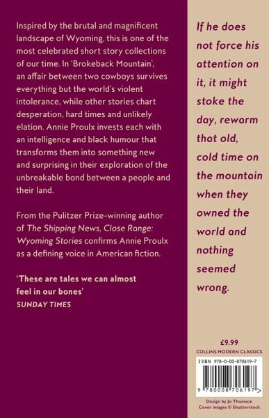 Die Männer hier sind um so dümmer und schwächer, je eifriger sie ihrem Macho-Image genügen wollen. Sie tätscheln die Kruppen ihrer Pferde und die Motorhauben ihrer Pick-ups liebevoller als die Köpfe wiehernder Bar- und weinender Ehefrauen. Proulx schildert ihre "zahmen Cowboys" und verzweifelt lustigen Witwen mit weiblicher Einfühlsamkeit und männlicher Sprödigkeit: Sie zuckt nicht einmal bei Vergewaltigungen und sexuellem Missbrauch mit der feministischen Wimper. Der Ostküstenliberalismus ist fern, und weit draußen wird man traditionsbewusst; Kritikerinnen sprechen sogar von reaktionärer Blut-und-Boden-Mystik und Frauenfeindlichkeit.