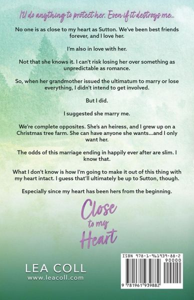 I'll do anything to protect her. Even if it destroys me... No one is as close to my heart as Sutton. We've been best friends forever, and I love her. I'm also in love with her. Not that she knows it. I can't risk losing her over something as unpredictable as romance. So, when her grandmother issued the ultimatum to marry or lose everything, I didn't intend to get involved. But I did. I suggested she marry me. We're complete opposites. She's an heiress, and I grew up on a Christmas tree farm. She can have anyone she wants...and I only want her. The odds of this marriage ending in happily ever after are slim. I know that. What I don't know is how I'm going to make it out of this thing with my heart intact. I guess that'll ultimately be up to Sutton, though. Especially since my heart has been hers from the beginning. Close to My Heart, book 3 in the Calloway series, is a sexy, sweet and spicy, friends to lovers contemporary romance novel that can be read as a standalone. Download today, and get ready to fall for Wes and Sutton.