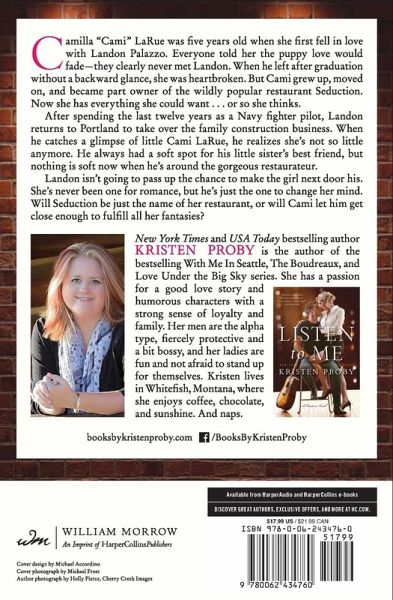 Camilla “Cami” LaRue was five years old when she first fell in love with Landon Palazzo. Everyone told her the puppy love would fade—they clearly never met Landon. When he left after graduation without a backward glance, she was heartbroken. But Cami grew up, moved on, and became part owner of the wildly popular restaurant Seduction. Now she has everything she could want . . . or so she thinks. After spending the last twelve years as a Navy fighter pilot, Landon returns to Portland to take over the family construction business. When he catches a glimpse of little Cami LaRue, he realizes she’s not so little anymore. He always had a soft spot for his little sister’s best friend, but nothing is soft now when he’s around the gorgeous restaurateur. Landon isn’t going to pass up the chance to make the girl next door his. She’s never been one for romance, but he’s just the one to change her mind. Will Seduction be just the name of her restaurant, or will Cami let him get close enough to fulfill all her fantasies?