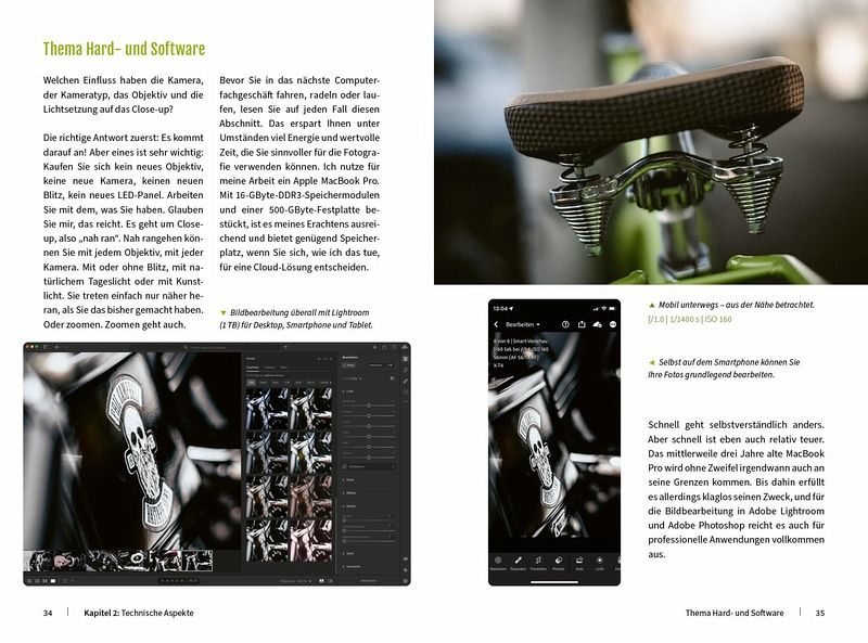 * Know-how, Inspiration und praktische Tipps vom Profi * Alles zu Equipment, Bildstil, Lichtsetzung & Herangehensweisen * Mit dezemtem Post-Processing zum perfekten Bild Entdecken Sie die kreativen Möglichkeiten der Close-up Fotografie und setzen Sie außergewöhnliche Details wie auch flüchtige Augenblicke eindrucksvoll in Szene! Ob Perspektive, Blende oder Bildsprache: Profitieren Sie von Jürgen Pagels Know-how , von seiner Erfahrung und seinen Praxistipps , die er in diesem Buch von A bis Z und mit zahlreichen Fotos präsentiert. Beginnend mit den Kameraeinstellungen führt Sie der Autor systematisch bis zur Königsdisziplin, dem manuellen Fokussieren inklusive aller wichtigen Parameter. Freuen Sie sich auf gut nachvollziehbare Anleitungen zur Lichtsetzung sowie zur Bildgestaltung und wenden Sie die hilfreichen Anregungen zu Workflow, Postproduktion und Bildbearbeitung am besten gleich selbst an! Aus dem Inhalt: * Alles zum benötigten Equipment * Ohne Licht ist alles nichts * Beherrsche die Belichtung * Lernen, manuell zu fokussieren * Zwischen Vorder- und Hintergrund * Offenblendig fotografieren * Butterweiche Bokehs mit "Altglas" * Bewegen in enger Schärfentiefe * Aufnahmemodi und Fokus-Peaking * Regeln bewusst brechen * Negativer Raum ist Kreativität * Die Bedeutung von Bildsprache * Inspirierende Motivideen * Details im urbanen Raum * Close-up-Projekte fotografieren * Herausforderung Foodaufnahmen * Dezente Nachbesserung & Retusche * Einen Workflow entwickeln