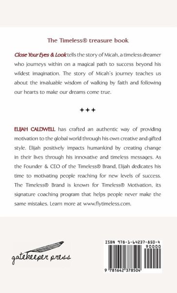 Close Your Eyes & Look tells the story of Micah, a timeless dreamer who journeys within on a magical path to success beyond his wildest imagination. The story of Micah’s journey teaches us about the invaluable wisdom of walking by faith and following our hearts to make our dreams come true.