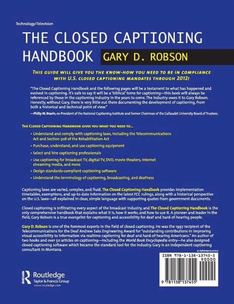 Gary D. Robson is one of the foremost experts in the field of closed captioning. He was the 1997 recipient of the Telecommunications for the Deaf Andrew Saks Engineering Award for "outstanding contributions in improving visual accessibility to information via realtime captioning for deaf and hard-of-hearing Americans.? An author of two books and over 50 articles on captioning-including the World Book Encyclopedia entry-he also designed closed captioning software which became the standard tool for the industry. Gary is an independent captioning consultant in Montana.