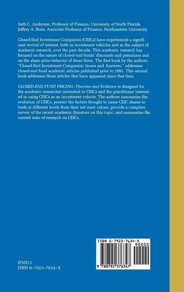 Closed-End Fund Pricing: Theories and Evidence is designed for the academic researcher interested in CEICs and the practitioner interested in using CEICs as an investment vehicle. The authors summarize the evolution of CEICs, present the factors thought to cause CEIC shares to trade at different levels from their net asset values, provide a complete survey of the recent academic literature on this topic, and summarize the current state of research on CEICs.