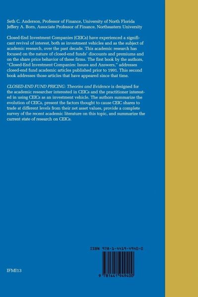 Closed-End Fund Pricing: Theories and Evidence is designed for the academic researcher interested in CEICs and the practitioner interested in using CEICs as an investment vehicle. The authors summarize the evolution of CEICs, present the factors thought to cause CEIC shares to trade at different levels from their net asset values, provide a complete survey of the recent academic literature on this topic, and summarize the current state of research on CEICs.