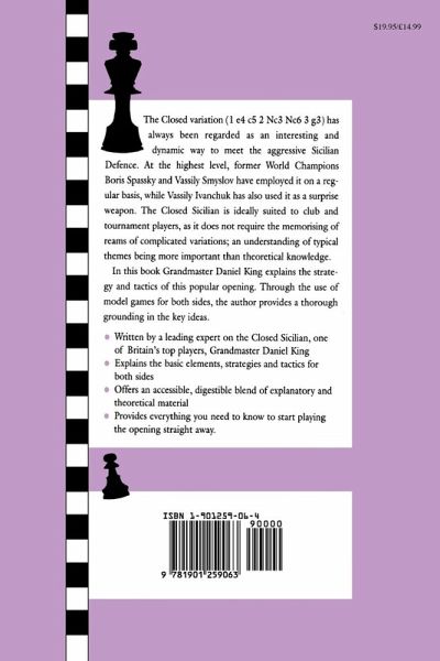 The Closed variation (1 e4 c5 2 Nc3 Nc6 3 g3) has always been regarded as an interesting and dynamic way to meet the aggressive Sicilian Defense. At the highest level, former World Champions Boris Spassky and Vassily Smyslov have employed it on a regular basis, while Vassily Ivanchuk has also used it as a surprise weapon. The Closed Sicilian is ideally suited to club and tournament players, as it does not require the memorising of reams of complicated variations; an understanding of typical themes being more important than theoretical knowledge. In this book, Grandmaster Daniel King explains the strategy and tactics of this popular opening. Through the use of model games for both sides, the author provides a thorough grounding in the key ideas.