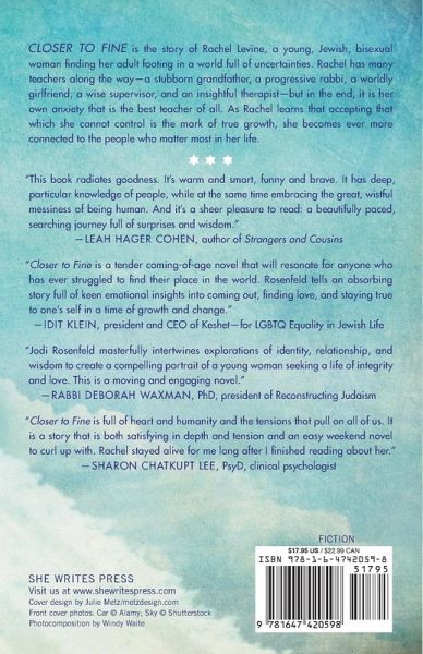 Jodi S. Rosenfeld is a clinical psychologist specializing in anxiety and acceptance-based therapies. She is a graduate of Tufts University and the Massachusetts School of Professional Psychology (now William James College). She plans to enter rabbinical school in the very near future. Closer to Fine is her first novel. She lives with her husband and two teenage children in Phoenixville, PA.