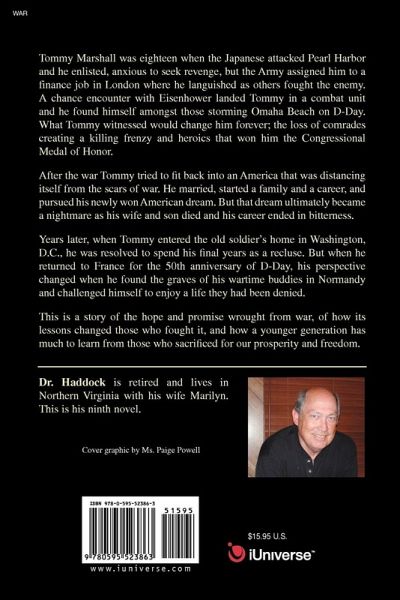 Tommy Marshall was eighteen when the Japanese attacked Pearl Harbor and he enlisted, anxious to seek revenge, but the Army assigned him to a finance job in London where he languished as others fought the enemy. A chance encounter with Eisenhower landed Tommy in a combat unit and he found himself amongst those storming Omaha Beach on D-Day. What Tommy witnessed would change him forever; the loss of comrades creating a killing frenzy and heroics that won him the Congressional Medal of Honor. After the war Tommy tried to fit back into an America that was distancing itself from the scars of war. He married, started a family and a career, and pursued his newly won American dream. But that dream ultimately became a nightmare as his wife and son died and his career ended in bitterness. Years later, when Tommy entered the old soldier's home in Washington, D.C., he was resolved to spend his final years as a recluse. But when he returned to France for the 50th anniversary of D-Day, his perspective changed when he found the graves of his wartime buddies in Normandy and challenged himself to enjoy a life they had been denied. This is a story of the hope and promise wrought from war, of how its lessons changed those who fought it, and how a younger generation has much to learn from those who sacrificed for our prosperity and freedom.