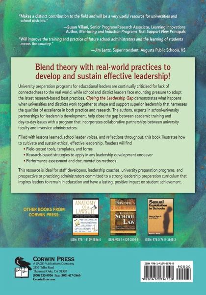 Ideal for creating a positive impact on leadership retention and student achievement, this resource helps close the gap between academic training and day-to-day issues by incorporating collaborative partnerships between university faculty and inservice administrators. Cultivate and sustain effective leadership with these field-tested tools, research-based leadership development strategies, and performance assessment and documentation methods!