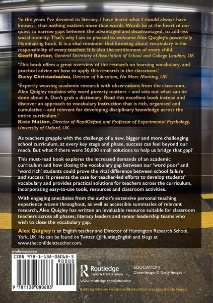 From understanding the reading process, to unveiling the intriguing history and â storyâ of words, the book explains what every teacher needs to know about vocabulary, seizing upon the opportunity to tackle the challenges of our academic curriculum and close the vocabulary gaps in our classrooms.