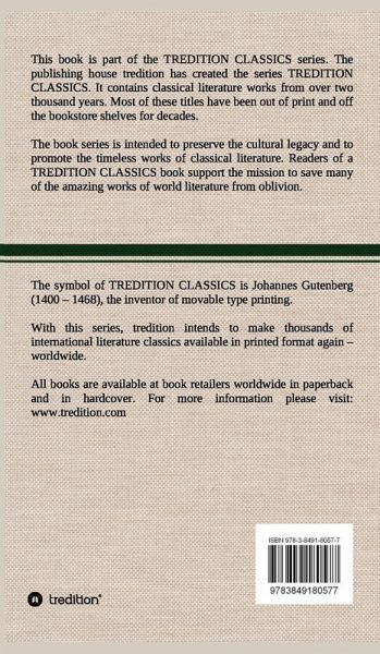 This book (hardcover) is part of the TREDITION CLASSICS. It contains classical literature works from over two thousand years. Most of these titles have been out of print and off the bookstore shelves for decades. The book series is intended to preserve the cultural legacy and to promote the timeless works of classical literature. Readers of a TREDITION CLASSICS book support the mission to save many of the amazing works of world literature from oblivion. With this series, tredition intends to make thousands of international literature classics available in printed format again worldwide.