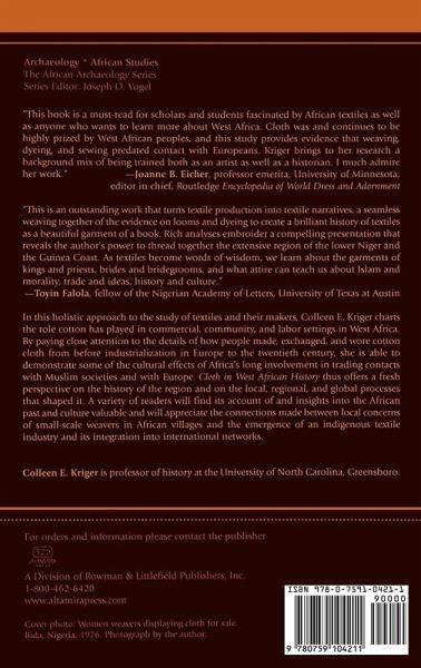 In this holistic approach to the study of textiles and their makers, Colleen Kriger charts the role cotton has played in commercial, community, and labor settings. She pays close attention the details of how people made, exchanged, and wore cotton cloth from before industrialization in Europe to the twentieth century. Closely tracing this history in Nigeria,Cloth in West African History offers a fresh perspective on the history of the region and on the local, regional, and global processes that shaped it.