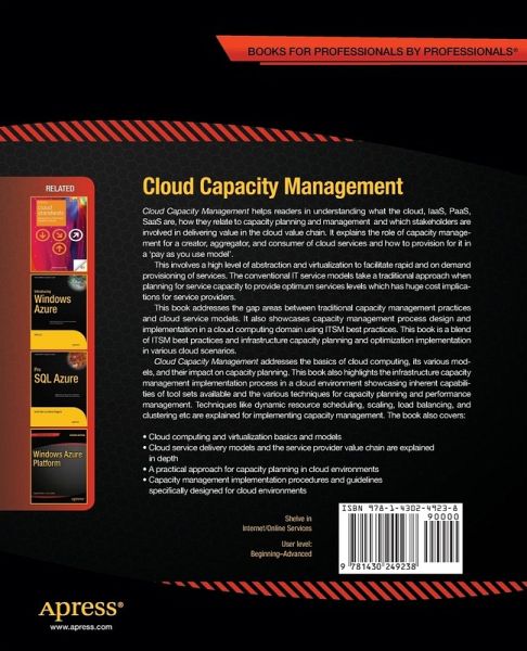 Cloud Capacity Management helps readers in understanding what the cloud, IaaS, PaaS, SaaS are, how they relate to capacity planning and management and which stakeholders are involved in delivering value in the cloud value chain. It explains the role of capacity management for a creator, aggregator, and consumer of cloud services and how to provision for it in a 'pay as you use model'.