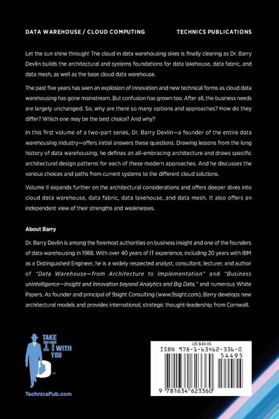 Let the sun shine through! The cloud in data warehousing skies is finally clearing as Dr. Barry Devlin builds the architectural and systems foundations for data lakehouse, data fabric, and data mesh, as well as the base cloud data warehouse. The past five years has seen an explosion of innovation and new technical forms as cloud data warehousing has gone mainstream. But confusion has grown too. After all, the business needs are largely unchanged. So, why are there so many options and approaches? How do they differ? Which one may be the best choice? And why? In this first volume of a two-part series, Dr. Barry Devlin-a founder of the entire data warehousing industry-offers initial answers these questions. Drawing lessons from the long history of data warehousing, he defines an all-embracing architecture and draws specific architectural design patterns for each of these modern approaches. And he discusses the various choices and paths from current systems to the different cloud solutions. Volume II expands further on the architectural considerations and offers deeper dives into cloud data warehouse, data fabric, data lakehouse, and data mesh. It also offers an independent view of their strengths and weaknesses.