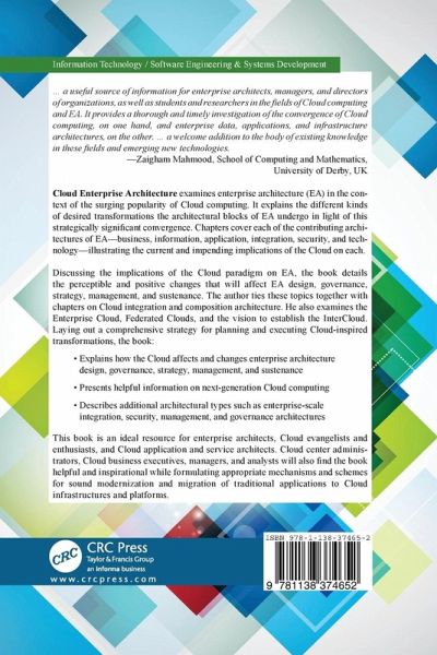 This book examines enterprise architecture (EA) in the context of the surging popularity of Cloud computing. It explains the transformation of EA resulting from the strategically significant convergence that cloud computing can achieve. Chapters cover each of the contributing architectures of EA, illustrating the current and impending implications of the Cloud on each of them. The author ties together these topics with chapters on Cloud integration and composition architecture. He also examines the Enterprise Cloud, federated Clouds, and the vision to establish the InterCloud.