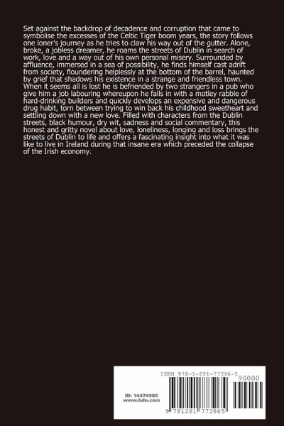 Set against the backdrop of decadence and corruption that came to symbolise the excesses of the Celtic Tiger boom years, the story follows one loner's journey as he tries to claw his way out of the gutter. Alone, broke, a jobless dreamer, he roams the streets of Dublin in search of work, love and a way out of his own personal misery. A twisted love story of longing, love and loss, full of black humour, dry wit and biting social commentary, this honest and gritty novel brings the streets of Dublin to life and offers a fascinating insight into what it was like to live in Ireland during that insane era which preceded the collapse of the Irish economy.