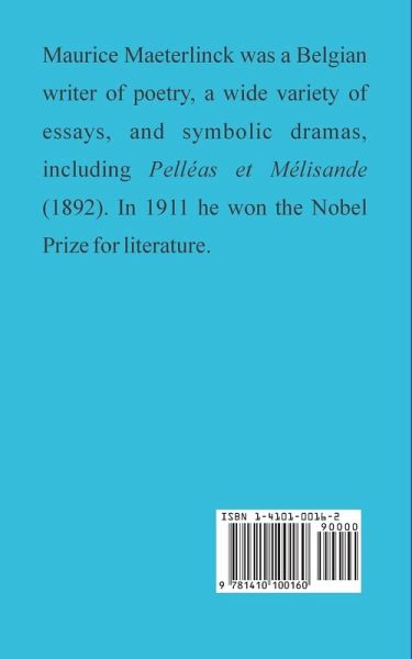Maurice Maeterlinck was a Belgian writer of poetry, a wide variety of essays, and symbolic dramas, including Pelléas et Mélisande (1892). In 1911 he won the Nobel Prize for literature.