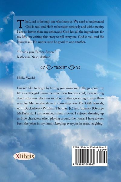The Lord is the only one who loves us. We need to understand God is real, and He is to be taken seriously and with serenity. I am no better than any other, and God has all the ingredients for my life. I'm writing this story to tell everyone: God is real, and He loves us all. He wants us to be good to one another. "I thank you, Father. Amen." Katherine Nash, Author