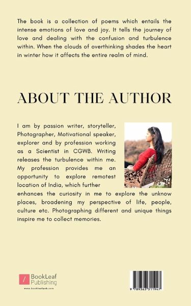 The book is a collection of poems which entails the intense emotions of love and joy. It tells the journey of love and dealing with the confusion and turbulence within. When the clouds of overthinking shades the heart in winter how it affects the entire realm of mind.