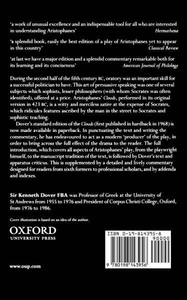 This new paperback edition of Aristophanes' popular play includes the complete Greek text and extensive notes and commentary. Dover examines the two versions of the play, recounts the history of the text, and analyzes a number of problems surrounding the play's interpretation, including the Greek notion of right and wrong, the purpose of the chorus, and Aristophanes' sexual jokes.