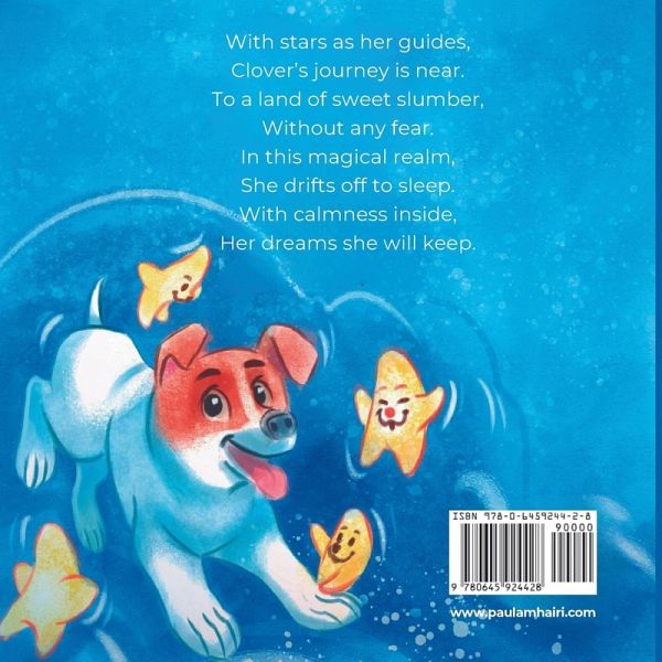 A bedtime story for young restless, energetic toddlers. Clover is a bouncy, wriggly puppy who finds her inner calm as she learns to 'box breathe' when she spots 4 bright stars in the night sky to follow with her eyes. "With stars as her guides, Clover's journey is near. To a land of sweet slumber, without any fear. In this magical realm, she drifts off to sleep, with calmness inside, her dreams she will keep." ¿¿Squirming and restless as bedtime arrives, Clover's gaze fixates on the star-studded night sky. With each inhale and exhale, she delicately traces the intricate patterns between the stars. Gradually, a sense of tranquillity washes over Clover, carrying her into the realm of dreams, where serenity and imagination interlace, guiding her into a peaceful slumber.