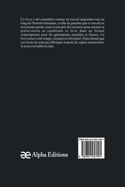 Clovis, Tome 1, un livre classique, a été considéré comme important tout au long de l'histoire de l'humanité, et pour que cet ouvrage ne soit jamais oublié, chez Alpha Editions, nous avons fait des efforts pour sa préservation en rééditant ce livre dans un format moderne pour les générations présentes et futures. Tout ce livre a été reformaté, retapé et conçu. Ces livres ne sont pas constitués de copies numérisées de leur ¿uvre originale et le texte est donc clair et lisible.