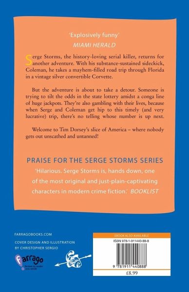 Serge Storms, the history-loving serial killer, returns for another adventure. This time Serge and his substance-sustained sidekick, Coleman, take a mayhem-filled road trip through Florida in a vintage silver convertible Corvette. Moving from town to town and getting a new job each week – from worm-grunting to sign-spinning – they cause havoc wherever they go. But their adventure is about to take a detour. Someone is trying to tilt the odds in the state lottery amidst a conga line of huge jackpots. Crooked bodega owners, drug cartels laundering money through the lottery, and venture capitalists are all trying to game the system--and lining up to get their cut. They're also gambling with their lives, because when Serge and Coleman get hip to this timely (and very lucrative) trip, there's no telling whose number is up next. In other words, welcome to Tim Dorsey's slice of America – where nobody gets out unscathed and untanned!