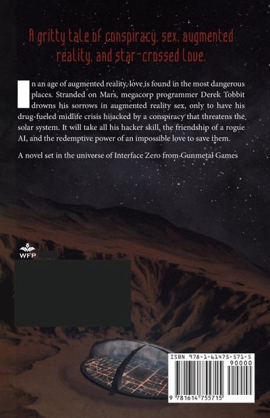 In an age of augmented reality, love is found in the most dangerous places. Stranded on Mars, megacorp programmer Derek Tobbit drowns his sorrows in augmented reality sex, only to have his drug-fueled midlife crisis hijacked by a conspiracy that threatens the solar system. It will take all his hacker skill, the friendship of a rogue AI, and the redemptive power of an impossible love to save them.