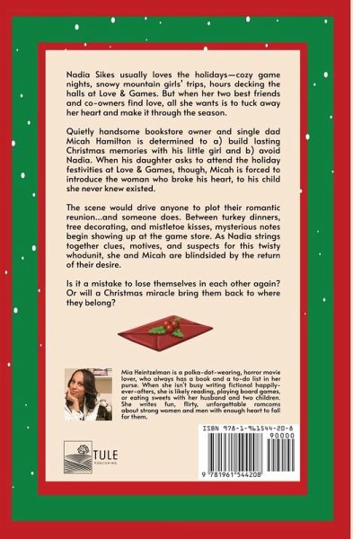 Nadia Sikes usually loves the holidays-cozy game nights, snowy mountain girls' trips, hours decking the halls at Love & Games. But when her two best friends and co-owners find love, all she wants is to tuck away her heart and make it through the season. Quietly handsome bookstore owner and single dad Micah Hamilton is determined to a) build lasting Christmas memories with his little girl and b) avoid Nadia. When his daughter asks to attend the holiday festivities at Love & Games, though, Micah is forced to introduce the woman who broke his heart, to his child she never knew existed. The scene would drive anyone to plot their romantic reunion...and someone does. Between turkey dinners, tree decorating, and mistletoe kisses, mysterious notes begin showing up at the game store. As Nadia strings together clues, motives, and suspects for this twisty whodunit, she and Micah are blindsided by the return of their desire. Is it a mistake to lose themselves in each other again? Or will a Christmas miracle bring them back to where they belong?