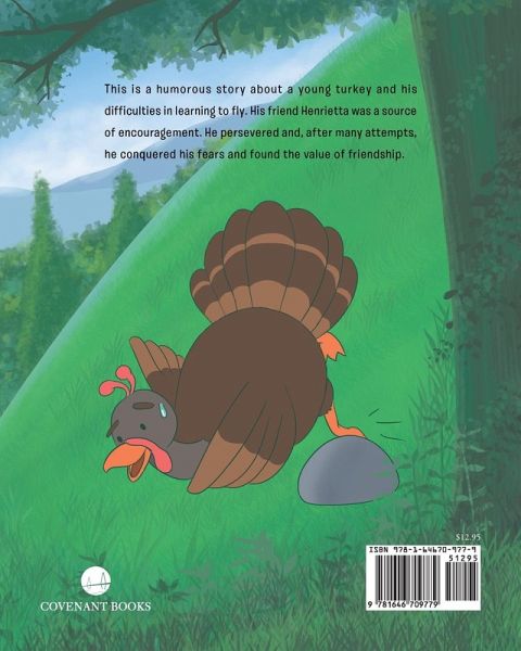 This is a humorous story about a young turkey and his difficulties in learning to fly. His friend Henrietta was a source of encouragement. He persevered and, after many attempts, he conquered his fears and found the value of friendship.
