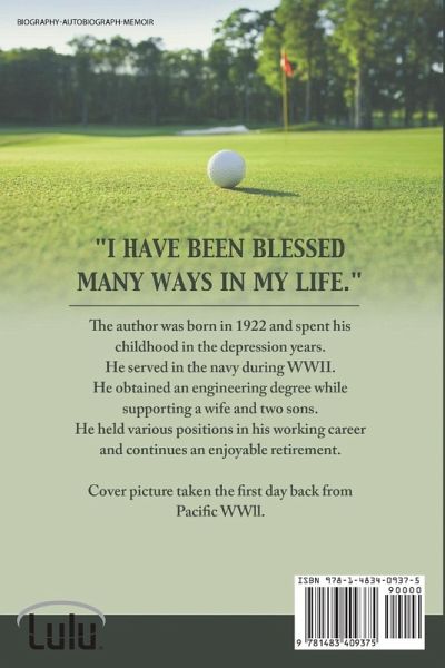 "I have been blessed many ways in my life." The author was born in 1922 and spent his childhood in the depression years. He served in the navy during WWII. Cover picture taken the first day back from Pacific WWII. He obtained an engineering degree while supporting a wife and two sons. He held various positions in his working career and continues an enjoyable retirement.