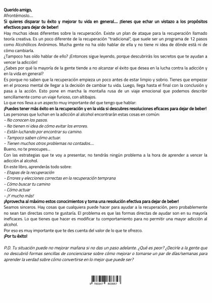 Querido amigo,Afrontémoslo.... Si quieres disparar tu éxito y mejorar tu vida en general.... ¡tienes que echar un vistazo a los propósitos efectivos para dejar de beber!Hay muchas ideas diferentes sobre la recuperación. Existe un plan de ataque para la recuperación llamado teoría creativa. Es un poco diferente de la recuperación "tradicional", que suele ser un programa de 12 pasos como Alcohólicos Anónimos. Mucha gente no ha oído hablar de ella y no tiene ni idea de dónde está ni de cómo cambiarla.¿Tampoco has oído hablar de ello? ¡Entonces sigue leyendo, porque descubrirás los secretos que te ayudan a vencer la adicción!¿Sabes por qué la mayoría de la gente tiende a no alcanzar el éxito que desea en la lucha contra la adicción y en la vida en general? Es porque no saben que la recuperación empieza un poco antes de estar limpio y sobrio. Tienes que empezar en el proceso mental de llegar a la decisión de cambiar tu vida. Luego, llega hasta el final con la conclusión y pasa a la acción. Esto pone en marcha la montaña rusa de un viaje emocional que podemos describir sencillamente como un viaje furioso, con altibajos.Lo que nos lleva a un aspecto muy importante del que tengo que hablar:¡Puedes tener más éxito en la recuperación y en la vida si descubres resoluciones eficaces para dejar de beber!Las personas que luchan en la adicción al alcohol encontrarán estas cosas en común:- No conocen los pasos.- No tienen ni idea de cómo evitar los errores.- Están luchando por encontrar su camino.- Tampoco saben cómo actuar.- Tienen muchos otros problemas no contados....Bueno, no te preocupes...Con las estrategias que te voy a presentar, no tendrás ningún problema a la hora de aprender a vencer la adicción al alcohol.En este libro, aprenderás todo sobre:- Etapas de la recuperación- Errores y elecciones correctas en la recuperación temprana- Cómo buscar tu camino- Cómo actuar- ¡Y mucho más!¡Aprovecha al máximo estos conocimientos y toma una resolución efectiva para dejar de beber!Seamos sinceros. Hay cosas que cualquiera puede hacer para ayudar a la recuperación, pero probablemente no sean tan directas como te gustaría. El problema es que las formas directas de ayudar son en su mayoría ineficaces. Lo que tienes que hacer es modificar tu comportamiento para no permitir una mayor adicción al alcohol.Por eso es muy importante que te des cuenta del valor de lo que te ofrezco.Recuerda que si no actúas hoy, las cosas no mejorarán.... Así que asegúrate de pasar a la acción y hazte con un ejemplar de este libro ahora mismo.¡Por tu éxito!P.D. Tu situación puede no mejorar mañana si no das un paso adelante. ¿Qué es peor? ¿Decirle a la gente que no descubrió formas sencillas de concienciarse sobre cómo mejorar o tomarse un par de días/semanas para aprender la verdad sobre cómo convertirse en lo mejor que puede ser?