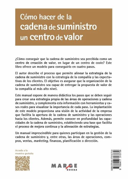 ¿Cómo conseguir que la cadena de suministro sea percibida como un centro de creación de valor, en lugar de un centro de coste? Este libro ofrece un modelo para conseguirlo en cuatro pasos. El autor describe el proceso que permite alinear la estrategia de la cadena de suministro con la estrategia de la compañía y las expectativas de los clientes. El objetivo es asegurar que la organización de la cadena de suministro sea capaz de entregar la propuesta de valor de la compañía al más alto nivel. Este manual expone de manera didáctica los pasos que se deben seguir para crear una estrategia propia de las áreas de operaciones y cadena de suministro, y complementa esta información con herramientas y casos reales para visualizar la importancia de cada paso. La implantación de este modelo proporciona una visión de la actividad de la empresa que facilita la apertura de la cadena de suministro y las operaciones hacia los clientes. Además, permite conocer en profundidad las capacidades de la cadena de suministro, estableciendo una base que facilita el proceso de mejora continua y la alineación de estrategias. Un manual imprescindible para quienes participan en la gestión de la cadena de suministro y, entre otras, las áreas de operaciones, compras, ventas, marketing, finanzas, planificación o dirección.