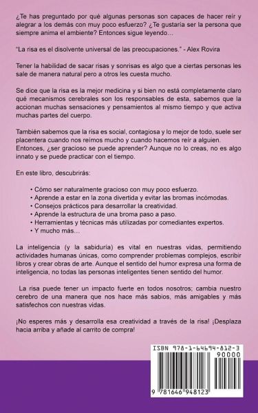 ¿Te has preguntado por qué algunas personas son capaces de hacer reír y alegrar a los demás con muy poco esfuerzo? ¿Te gustaría ser la persona que siempre anima el ambiente? Entonces sigue leyendo... "La risa es el disolvente universal de las preocupaciones." - Alex Rovira Tener la habilidad de sacar risas y sonrisas es algo que a ciertas personas les sale de manera natural pero a otros les cuesta mucho. Se dice que la risa es la mejor medicina y si bien no está completamente claro qué mecanismos cerebrales son los responsables de esta, sabemos que la accionan muchas sensaciones y pensamientos al mismo tiempo y que activa muchas partes del cuerpo. También sabemos que la risa es social, contagiosa y lo mejor de todo, suele ser placentera cuando nos reímos mucho y cuando hacemos reír a alguien. Entonces, ¿ser gracioso se puede aprender? Aunque no lo creas, no es algo innato y se puede practicar con el tiempo. En este libro, descubrirás: Cómo ser naturalmente gracioso con muy poco esfuerzo. Aprende a estar en la zona divertida y evitar las bromas incómodas. Consejos prácticos para desarrollar la creatividad. Aprende la estructura de una broma paso a paso. Herramientas y técnicas más utilizadas por comediantes expertos. Y mucho más... La inteligencia (y la sabiduría) es vital en nuestras vidas, permitiendo actividades humanas únicas, como comprender problemas complejos, escribir libros y crear obras de arte. Aunque el sentido del humor expresa una forma de inteligencia, no todas las personas inteligentes tienen sentido del humor. La risa puede tener un impacto fuerte en todos nosotros; cambia nuestro cerebro de una manera que nos hace más sabios, más amigables y más satisfechos con nuestras vidas. ¡No esperes más y desarrolla esa creatividad a través de la risa! ¡Desplaza hacia arriba y añade al carrito de compra!