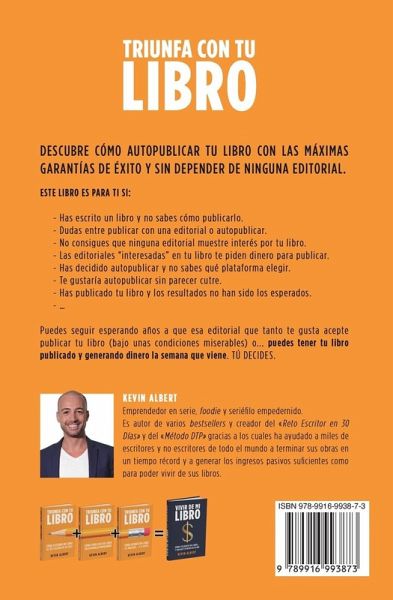 ¿Te gustaría autopublicar tu libro con las máximas garantías de éxito y sin tener que depender de ninguna editorial? Descubre el método exacto que me permitió pasar de publicar mi primer libro en algo más de 6 meses a hacerlo en menos de una semana y con mejores resultados gracias a la autopublicación en Amazon. Con la ayuda de esta GUÍA DE 7 PASOS podrás publicar tu libro en un tiempo récord y sin necesidad de... - ...depender de lo que diga o piense una editorial, - ...negociar condiciones ridículas por ser un autor novel, - ...tener que pagar para que se publique tu libro, - ...tener que preocuparte por encontrar a tus primeros lectores, - ...aprender a diseñar o maquetar tu libro, - ... Qué vas a aprender con este libro: - Cómo decidir si autopublicar o publicar con editorial. - Cómo evitar caer en "el timo de la editorial". Si te pide dinero NO es una editorial. - Cómo publicar tu libro sin invertir un solo euro. - Cómo autopublicar un libro sin que parezca autopublicado. - Cómo editar tu libro a precios low cost. Edición profesional a precios de aficionado. - Cómo maquetar tu libro mejor que una editorial. - Cómo diseñar la portada perfecta de tu libro (¡la que más venda!) sin tener que aprender de diseño. - Cómo crear una descripción que multiplique las ventas de tu libro. - Cómo elegir las palabras clave para que tus clientes te encuentren. - Cómo elegir las categorías para tu libro que te permitan subir posiciones en el ranking de Amazon. - Cómo fijar el precio de tu libro. - Cómo aumentar las ventas de tu libro, aunque ya esté publicado. - ... Este libro es para ti si: - Has escrito un libro y no sabes cómo publicarlo. - Dudas entre publicar con una editorial o autopublicar. - No consigues que ninguna editorial muestre interés por tu libro. - Las editoriales que "dicen estar interesadas" en tu libro te piden dinero imprimir las primeras unidades. - Has decidido autopublicar y no sabes qué plataforma elegir. - Te gustaría autopublicar sin parecer cutre. - Has publicado tu libro y los resultados no han sido los esperados. - ... Tu decides: Puedes seguir esperando años a que esa editorial que tanto te gusta acepte publicar tu libro (bajo unas condiciones miserables) ... o puedes tener tu libro publicado y generando dinero la semana que viene.