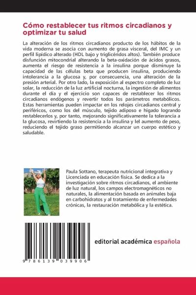 La alteración de los ritmos circadianos producto de los hábitos de la vida moderna se asocia con aumento de grasa visceral, del IMC y un perfil lipídico alterado (HDL bajo y triglicéridos altos). También produce disfunción mitocondrial alterando la beta-oxidación de ácidos grasos, aumenta el riesgo de resistencia a la insulina porque disminuye la capacidad de las células beta que producen insulina, produciendo intolerancia a la glucosa y, por consecuencia, una alteración de la presión arterial. Por otro lado, la exposición al espectro completo de luz solar, la reducción de la luz artificial nocturna, la ingestión de alimentos durante el día y el ejercicio son capaces de restablecer los ritmos circadianos endógenos y revertir todos los parámetros metabólicos. Estas herramientas pueden impactar en los relojes circadianos central y periféricos, como los del músculo, tejido adiposo e hígado logrando restablecerlos y, por tanto, mejorando significativamente la tolerancia a la glucosa, revirtiendo la resistencia a la insulina y lel aumento de peso, reduciendo el tejido graso permitiendo alcanzar un cuerpo estético y saludable.