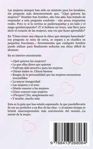 Las mujeres siempre han sido un misterio para los hombres, sin pregunta más desconcertante que, "¿Qué quieren las mujeres?" Hombre tras hombre, año tras año, han tratado de responder a esta pregunta candente - con pocas respuestas reales. Pero ¿y si la cortina se pudiera apartar a un lado y el mago quedar expuesto? ¿Y si hubiese un truco, una llave para abrir el corazón de las mujeres, una vez que fuese aprendido? En "Cómo tener una cita con la chica que siempre has soñado" esa pregunta se mira de cerca, se separa y se clasifica en pequeñas fracciones - herramientas que cualquier hombre puede utilizar para finalmente seducir a esa chica difícil de alcanzar. En su interior encontrarás: * ¿Qué quieren las mujeres? * Lo que ellas dicen que quieren * Vuélvete más atractivo para las mujeres * Chicos malos vs. Chicos buenos * Rasgos de la personalidad que las mujeres encuentran irresistibles * La mayor inseguridad * Las mujeres y el sexo * Dónde conocer a las mujeres * Cómo conocer esas mujeres * ¿Piropos? (No, simplemente no) * Y mucho, mucho más Esta es la guía que has estado esperando, la que puede llevarte de ser un perdedor a un Rey de las citas - y al mismo tiempo te brinda una comprensión más convincente del mundo... La mente de la mujer.