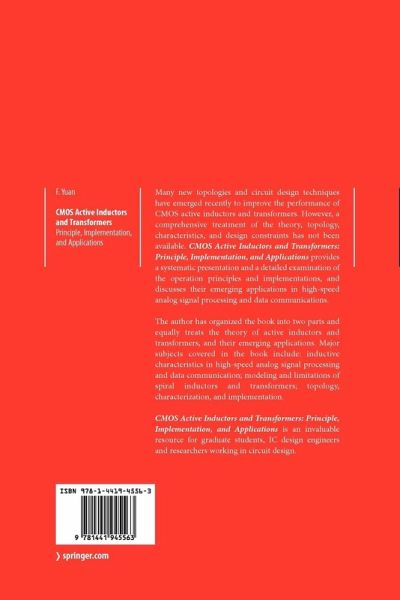 Many new topologies and circuit design techniques have emerged recently to improve the performance of active inductors, but a comprehensive treatment of the theory, topology, characteristics, and design constraint of CMOS active inductors and transformers, and a detailed examination of their emerging applications in high-speed analog signal processing and data communications over wire and wireless channels, is not available. This book is an attempt to provide an in-depth examination and a systematic presentation of the operation principles and implementation details of CMOS active inductors and transformers, and a detailed examination of their emerging applications in high-speed analog signal processing and data communications over wire and wireless channels.