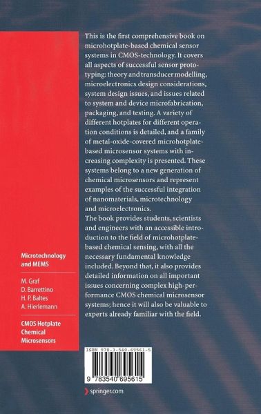 The book provides students, scientists and engineers with an accessible introduction to the field of microhotplate-based chemical sensing, with all the necessary fundamental knowledge included. Beyond that, it also provides detailed information on all important issues concerning complex high-performance CMOS chemical microsensor systems; hence it will also be valuable to experts already familiar with the field.