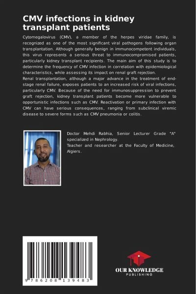 Cytomegalovirus (CMV), a member of the herpes viridae family, is recognized as one of the most significant viral pathogens following organ transplantation. Although generally benign in immunocompetent individuals, this virus represents a serious threat to immunocompromised patients, particularly kidney transplant recipients. The main aim of this study is to determine the frequency of CMV infection in correlation with epidemiological characteristics, while assessing its impact on renal graft rejection.Renal transplantation, although a major advance in the treatment of end-stage renal failure, exposes patients to an increased risk of viral infections, particularly CMV. Because of the need for immunosuppression to prevent graft rejection, kidney transplant patients become more vulnerable to opportunistic infections such as CMV. Reactivation or primary infection with CMV can have serious consequences, ranging from subclinical viremic disease to severe forms such as CMV pneumonia or colitis.