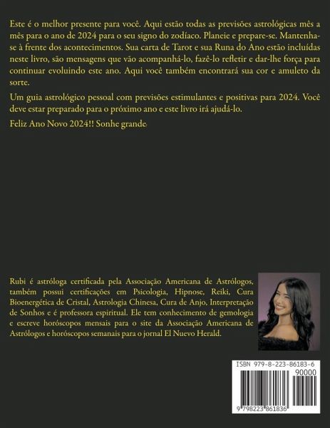 Este é o melhor presente para você. Aqui estão todas as previsões astrológicas mês a mês para o ano de 2024 para o seu signo do zodíaco. Planeie e prepare-se. Mantenha-se à frente dos acontecimentos. Sua carta de Tarot e sua Runa do Ano estão incluídas neste livro, são mensagens que vão acompanhá-lo, fazê-lo refletir e dar-lhe força para continuar evoluindo este ano. Aqui você também encontrará sua cor e amuleto da sorte. Um guia astrológico pessoal com previsões estimulantes e positivas para 2024. Você deve estar preparado para o próximo ano e este livro irá ajudá-lo. Feliz Ano Novo 2024!! Sonhe grande!