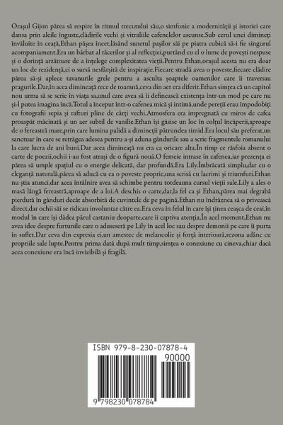 Oräul Gijon p¿rea s¿ respire în ritmul trecutului s¿u,o simfonie a modernit¿¿ii ¿i istoriei care dansa prin aleile înguste,cl¿dirile vechi ¿i vitraliile cafenelelor ascunse.Sub cerul unei dimine¿i înv¿luite în ceä¿,Ethan p¿¿ea încet,l¿sând sunetul päilor s¿i pe piatra cubic¿ s¿-i fie singurul acompaniament.Era un b¿rbat al t¿cerilor ¿i al reflec¿iei,purtând cu el o lume de pove¿ti nespuse ¿i o dorin¿¿ arz¿toare de a în¿elege complexitatea vie¿ii.Pentru Ethan,oräul acesta nu era doar un loc de reziden¿¿,ci o surs¿ nesfâr¿it¿ de inspiräie.Fiecare strad¿ avea o poveste,fiecare cl¿dire p¿rea s¿-¿i aplece tavanurile grele pentru a asculta ¿oaptele oamenilor care îi traversau pragurile.Dar,în acea dimineä¿ rece de toamn¿,ceva din aer era diferit.Ethan sim¿ea c¿ un capitol nou urma s¿ se scrie în viäa sa,unul care avea s¿ îi defineasc¿ existen¿a într-un mod pe care nu ¿i-l putea imagina înc¿.Totul a început într-o cafenea mic¿ ¿i intim¿,unde pere¿ii erau împodobi¿i cu fotografii sepia ¿i rafturi pline de c¿r¿i vechi.Atmosfera era impregnat¿ cu miros de cafea proasp¿t m¿cinat¿ ¿i un aer subtil de vanilie.Ethan î¿i g¿sise un loc în col¿ul înc¿perii,aproape de o fereastr¿ mare,prin care lumina palid¿ a dimine¿ii p¿trundea timid.Era locul s¿u preferat,un sanctuar în care se retr¿gea adesea pentru a-¿i aduna gândurile sau a scrie fragmentele romanului la care lucra de ani buni.Dar acea dimineä¿ nu era ca oricare alta.În timp ce r¿sfoia absent o carte de poezii,ochii i-au fost aträi de o figur¿ nou¿.O femeie intrase în cafenea,iar prezen¿a ei p¿rea s¿ umple späiul cu o energie delicat¿, dar profund¿.Era Lily.Îmbr¿cat¿ simplu,dar cu o elegan¿¿ natural¿,p¿rea s¿ aduc¿ cu ea o poveste proprie,una scris¿ cu lacrimi ¿i triumfuri.Ethan nu ¿tia atunci,dar acea întâlnire avea s¿ schimbe pentru totdeauna cursul vie¿ii sale.Lily a ales o mas¿ lâng¿ fereastr¿,aproape de a lui.A deschis o carte,dar,la fel ca ¿i Ethan,p¿rea mai degrab¿ pierdut¿ în gânduri decât absorbit¿ de cuvintele de pe pagin¿.Ethan nu îndr¿znea s¿ o priveasc¿ direct,dar ochii s¿i se ridicau involuntar c¿tre ea.Era ceva în felul în care î¿i ¿inea ceäca de ceai,în modul în care î¿i d¿dea p¿rul castaniu deoparte,care îi captiva aten¿ia.În acel moment,Ethan nu avea idee despre furtunile care o aduseser¿ pe Lily în acel loc sau despre demonii pe care îi purta în suflet.Dar ceva din expresia ei,un amestec de melancolie ¿i for¿¿ interioar¿,rezona adânc cu propriile sale lupte.Pentru prima dat¿ dup¿ mult timp,sim¿ea o conexiune cu cineva,chiar dac¿ acea conexiune era înc¿ invizibil¿ ¿i fragil¿.