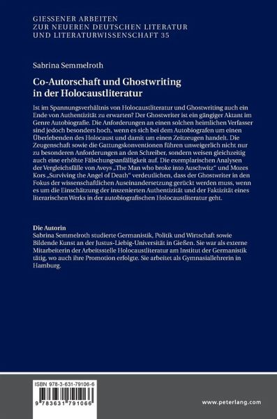 Ist im Spannungsfeld zwischen Holocaustliteratur und Ghostwriting auch ein Ende von Authentizität zu erwarten? Der Ghostwriter ist ein gängiger Aktant im Genre Autobiografie. Die Anforderungen an den Ghostwriter eines historischen Zeugen scheinen besonders hoch zu sein, da der Autobiograf im Bereich der Holocaustliteratur über seine Verpflichtung gegenüber der Gattungskonvention hinaus auch als "moralischer Zeuge" der Erlebnisse während des Holocaust auftritt. Die exemplarischen Analysen der Vergleichsfälle von Aveys "The Man who broke into Auschwitz" und Mozes Kors "Surviving the Angel of Death" verdeutlichen, dass der Ghostwriter als (heimlicher) Verfasser oder in Erscheinung getretener Ghostwriter (Autobiografiker) einer Autobiografie im Bereich der Holocaustliteratur in den Fokus der wissenschaftlichen Auseinandersetzung gerückt werden muss, wenn es um die Einschätzung der inszenierten Authentizität und der Faktizität des literarischen Haupttextes geht.