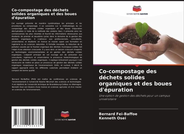Cet ouvrage présente de manière systématique les principes et les procédures du compostage. Il se concentre sur la méthodologie du co-compostage des déchets solides organiques et des boues d'épuration déshydratées à l'aide de la méthode des andains (tas). Il présente ainsi les connaissances les plus récentes et fournit les informations nécessaires aux étudiants de premier et deuxième cycles dans le domaine de la gestion des déchets organiques. Il s'adresse aux professionnels, consultants, universitaires et étudiants en licence et master ayant une formation en ingénierie ou en sciences naturelles. À l'échelle mondiale, la réduction de la pollution causée par la fraction organique des déchets municipaux solides fait l'objet d'une attention croissante. Il y aura donc un besoin croissant d'experts en technologies environnementales et en gestion des déchets solides organiques. L'objectif principal de cet ouvrage est de présenter aux consultants, ingénieurs et universitaires le processus biotechnologique de gestion des déchets solides organiques. Il explique brièvement pourquoi il est nécessaire de mettre en place un processus de gestion des déchets solides organiques respectueux de l'environnement. Enfin, et surtout, il décrit le rapport approprié entre les différents substrats permettant d'obtenir un compost de bonne qualité.