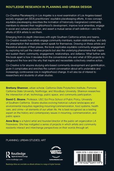Co-Creative Placekeeping in Los Angeles is a novel examination of Los Angeles-based socially engaged art (SEA) practitioners' equitable placekeeping efforts. A new concept, equitable placekeeping describes the inclination of historically marginalized community members to steward their neighborhood's development, improve local amenities, engage in social and cultural production, and assert a mutual sense of self-definition-and the efforts of SEA artists to aid them.
