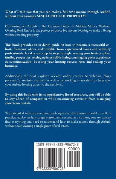 What if I told you that you can make a full time income through AirBnB without even owning a SINGLE PIECE OF PROPERTY? Co-hosting on Airbnb - The Ultimate Guide to Making Money Without Owning Real Estate is the perfect resource for anyone looking to make a living without owning property. This book provides an in-depth guide on how to become a successful co-host, featuring advice and insights from experienced hosts and industry professionals. It takes you step by step through creating your business plan, finding properties, setting up irresistible listings, managing guest experience & communication, boosting your hosting success rates and scaling your business. Additionally the book explores relevant online courses & webinars, blogs podcasts & YouTube channels as well as networking events that can help take your Airbnb hosting career to the next level. By using this book with its comprehensive list of resources, you will be able to stay ahead of competition while maximizing revenues from managing short term rentals. With detailed information about each aspect of this business model as well as practical advice on how to get started and succeed as a co-host, you are sure to find everything you need to understand how to make money through Airbnb without owning a single piece of real estate. So, what are you waiting for? Let's get started on your co-hosting journey today!