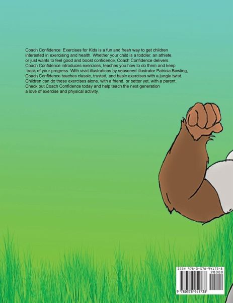 Coach Confidence: Exercises for Kids is a fun and fresh way to get children interested in exercising and health. Whether your child is a toddler, an athlete, or just wants to feel good and boost confidence, Coach Confidence delivers. Coach Confidence introduces exercises, teaches you how to do them and keep track of your progress. With vivid illustrations by seasoned illustrator Patricia Bowling, Coach Confidence teaches classic, trusted, and basic exercises with a jungle twist. You won't need any other equipment, and you don't need a partner, so children can do these exercises safely alone or with a friend.