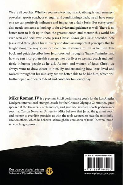 We are all coaches. Whether you are a teacher, parent, sibling, friend, manager, coworker, sports coach, or strength and conditioning coach, we all have someone we can positively influence and impact on a daily basis. But every coach also needs someone to look up to for advice and guidance as well. There is no better man to look up to than the greatest coach and mentor this world has ever seen and will ever know, Jesus Christ. Coach for Christ describes how Jesus lived throughout his ministry and discusses important principles that he taught along the way so we can continually attempt to live as he died. This book and guide describes how Jesus coached through a ""heaven"" mindset and how we can incorporate this concept into our lives so we may coach and positively influence people as he did. As men and women of Jesus Christ, we always want to draw closer to him. By understanding how Jesus lived and walked throughout his ministry, we are better able to be like him, which will further open our hearts to lead and coach for him every day.